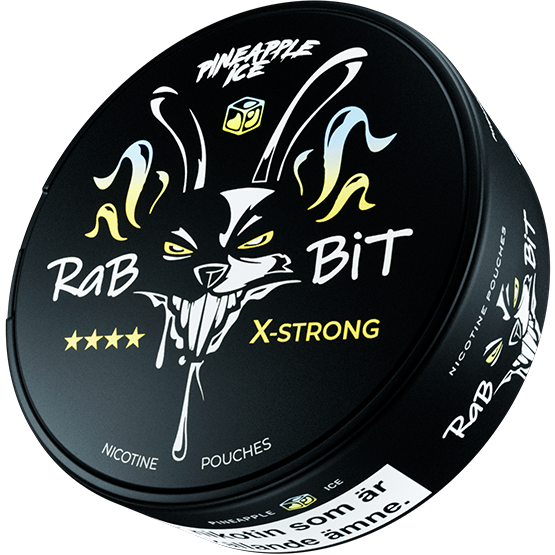 RaBBiT Pineapple Ice X-Strong sind extra starke Nikotin Pouches mit 40 mg/g Nikotin. Der erfrischende Ananas und Minze sorgt für ein intensives Geschmackserlebnis. Die Slim-Beutel sind tabakfrei, diskret und ideal für erfahrene Nutzer. Hergestellt von Nicobit. Enthält 20 Pouches pro Dose. Jetzt Rabbit Snus online kaufen.